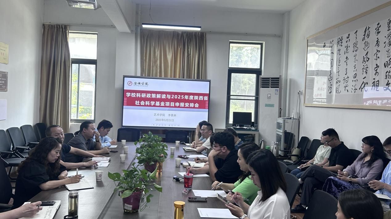 会上,李景林领学了学校科研奖励政策与职称评审文件,回顾总结了省社会科学基金项目往年申报立项情况,传达了2025年度陕西省社会科学基金年度项目和“青博”项目申报工作文件精神。