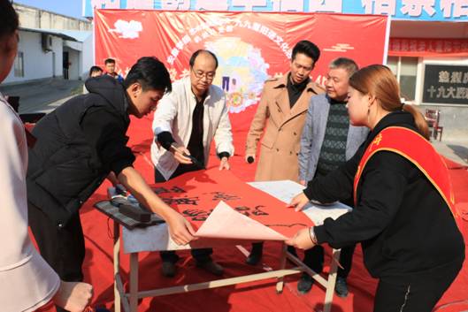 美术、设计系党支部党员教师及志愿者服务队为老人书写板报,每一个字的认真书写都展露了教师和同学们的风采,每一笔勾描都透露着大家的谨慎和专注。大家热情洋溢,纷纷用手中的粉笔,描绘对十九大胜利召开的美好祝福,表达着beat365官网总支全体党员对美丽中国梦的美好憧憬和无穷信心。同时党总支书记王辉还带领美术专业党员教师为过生日的老人书写书法作品,送去了节日的祝福。