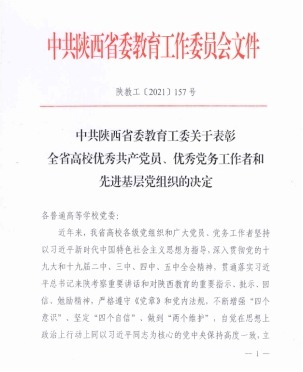 党委副书记胡波宣读了《中共陕西省委教育工委关于表彰全省高校优秀共产党员、优秀党务工作者和先进基层党组织的决定》,beat365正版唯一官网必一党总支被授予“陕西高校先进基层党组织”荣誉称号。