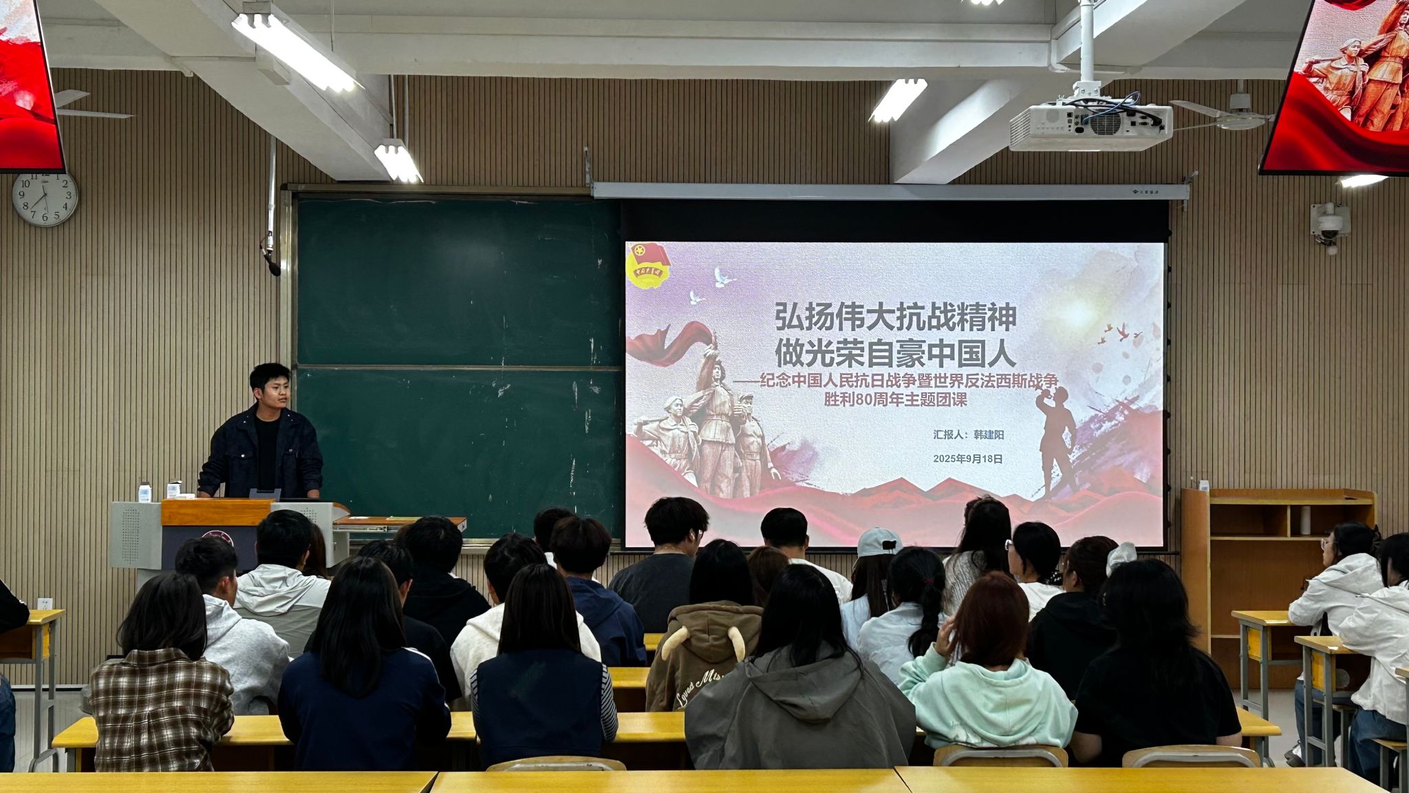为了深入学习习近平总书记在纪念中国人民抗日战争暨世界反法西斯战争胜利80周年大会上的重要讲话精神,深化学生对伟大抗战精神的理解与认同,充分发挥思政课立德树人主渠道作用,beat365正版唯一官网必一团总支于9月18日在学院多媒体教室及学生宿舍等场所,开展“弘扬伟大抗战精神做光荣自豪中国人——纪念中国人民抗日战争暨世界反法西斯战争胜利80周年”思政大课学习活动。