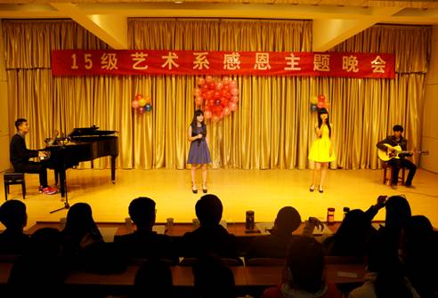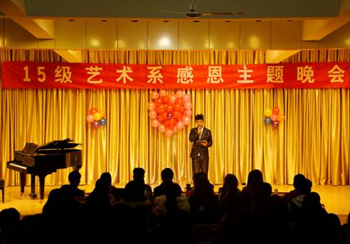 感恩教育作为大学生思想政治教育的新路径,为促进学生全面发展,实现德育目标,建设和谐校园,构建和谐社会提供有力保障。根据校团委关于在2015级新生中开展感恩教育活动的工作安排,艺术系团总支在校团委、系党总支的领导下,认真贯彻,积极开展以“感恩存心,有爱为伴”为主题的感恩系列活动。2015年11月25日晚,我系2015级音乐学专业在江北校区1401教室举行感恩主题晚会。参加晚会的有系党总支书记冯丰收、系学工办主任刘泽桢、2014级辅导员艾蕾、2015级辅导员鲁澧以及2015级全体同学。