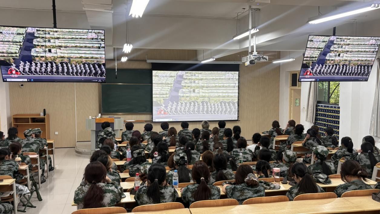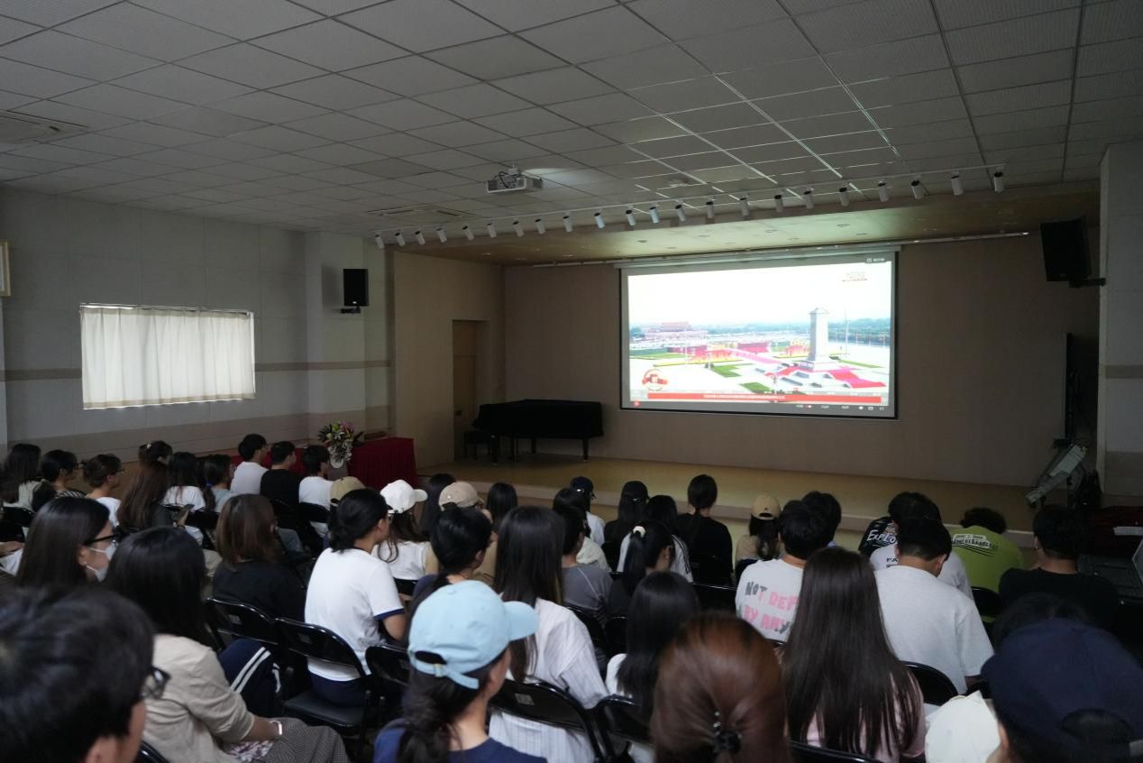 beat365官网组织师生观看九三阅兵 同上一堂爱国主义教育思政课活动