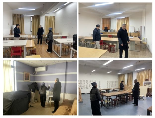检查小组对学院画室、琴房和设计实训室等教学场所的安全设施、教学设备及环境卫生情况进行了全面检查,检查发现学院实训室总体安全情况较好,但也有部分实训室存在电脑、空调、一体机等设施设备未及时切断电源情况。孙院长要求实训室管理人员要强化对实训室的安全管理,对检查中发现的问题现场进行整改,对寒假期间不再使用的实训室及时张贴封条,对假期仍需使用的实训室,要求相关人员按规定办理借用手续,同时强调实训室安全使用规范,确保寒假期间学院实训室安全稳定。