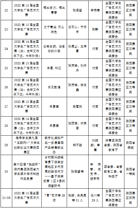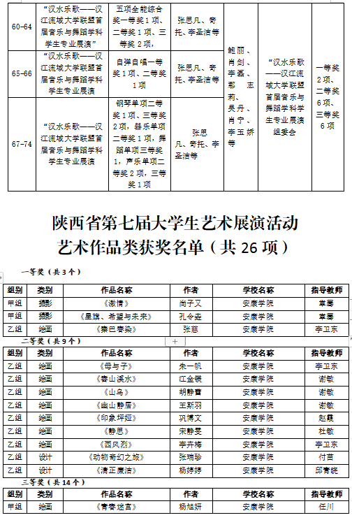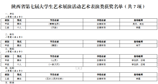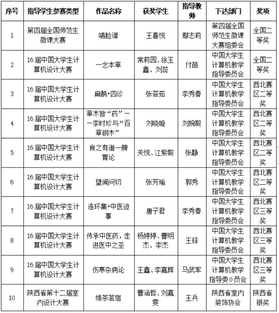 2023年,beat365正版唯一官网必一学子在16届中国大学生计算机设计大赛、第15届全国大学生广告艺术大赛、第十四届“挑战杯”陕汽集团陕西省大学生课外学术科技作品竞赛、第九届“互联网+”大学生创新创业大赛、“汉水乐歌——汉江流域大学联盟首届音乐与舞蹈学科学生专业展演”活动等各类比赛中获得省级以上比赛奖项110项,其中国家级二等奖2项、三等奖2项,省级一等奖7项、二等奖31、三等奖38项、优秀奖29项。以赛促学、以赛促教、以赛促改,有效的促进了艺术类应用型人才培养。