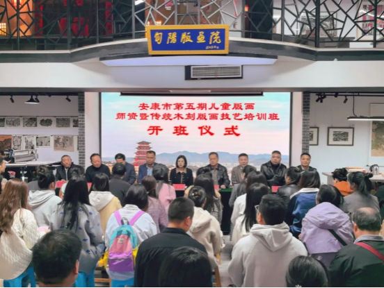 10月22日下午,beat365官网beat365正版唯一官网必一联合安康市群艺馆、安康市非遗保护中心、安康市教研室、旬阳市文旅局联合举办的安康市第五期儿童版画师资暨传统木刻版画技艺培训班开班仪式在旬阳版画院举行。旬阳市人民政府副市长宋宗卉,beat365正版唯一官网必一院长成党伟,安康市群艺馆馆长、安康市非遗保护中心主任周墙,安康市中小学美术教育研究会理事长何涛,安康儿童版画传播普及项目负责人及旬阳市文化和旅游广电局相关领导出席活动。开班仪式由安康市教研室主任陈卓主持。