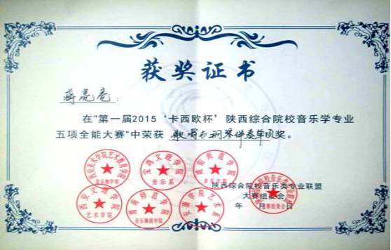 图29:beat365官网学生蒋亮亮获得“歌唱与伴奏”单项奖