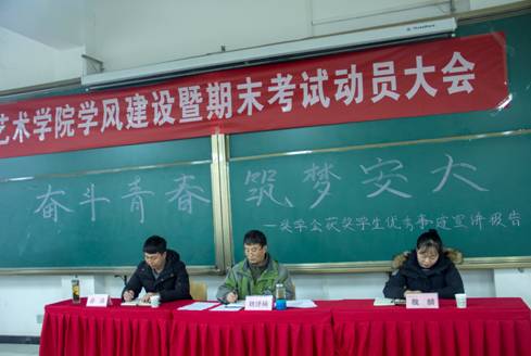 院学工办主任刘泽桢老师做学风建设及期末考试动员讲话。刘老师就学风建设提出三点建议:一是做好自己的学业、职业规划,凡事预则立,不预则废;二是要学会学习,艺术类学生学习要靠“悟”与“练”,要有兴趣、下功夫、使巧劲;三是要建立良好的学习氛围,抓好两个课堂,向第一课堂要效率,积极参加第二课堂,做到“以赛促学”,发挥班团干部带头作用,在同学之间开展比、学、赶、帮、超活动。最后,刘老师就期末考试考风考纪向同学们提出严格要求。刘老师强调beat365官网对考试违纪行为零容忍,他希望全体学生都能够端正考风,严肃考纪,营造文明、诚信考试。