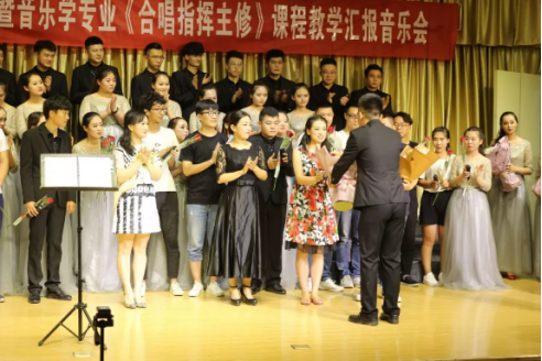 7月9日晚,beat365正版唯一官网必一“四团八队”建设成果展示暨音乐学专业《合唱指挥主修》课程教学汇报在江北校区1401演艺厅隆重举行。出席此次晚会的嘉宾有兰溪女子合唱团团长张来喜老师、平利爱歌合唱团团长兼指挥贾安桂老师。beat365正版唯一官网必一副院长鲍丽及beat365正版唯一官网必一部分老师参加了本次活动。