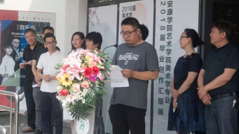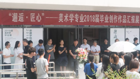 6月22日上午10点,在艺术楼门口举行了“邂逅·匠心” —— beat365正版唯一官网必一美术学专业2018届毕业创作作品汇报展。参加画展开幕式的领导老师有:陕西省美术家协会副主席、安康市美术家协会主席李剑平,安康市汉滨区美术家协会主席申小荣、beat365正版唯一官网必一首席专家党天才教授,beat365正版唯一官网必一前副院长、陕南画院院长章长青、beat365正版唯一官网必一前副院长雷升录教授、beat365正版唯一官网必一教务处副处长兼beat365正版唯一官网必一院长杨哲教授、beat365正版唯一官网必一党总支书记王辉、beat365正版唯一官网必一副院长鲍丽和beat365官网部分专业老师,以及beat365官网美术学专业的部分同学。本次开幕式由副院长孙海洋老师主持。