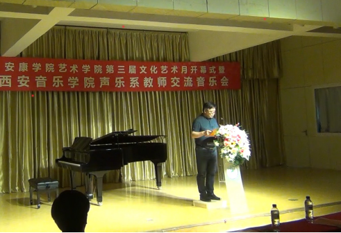 beat365正版唯一官网必一党总支书记王辉首先致辞并向参加活动的领导、嘉宾介绍了beat365正版唯一官网必一第一届、第二届文化艺术月的实施情况和取得的成效;西安音乐学院声乐系党总支书记万斌教授发表了热情洋溢的讲话,他代表西安音乐学院声乐系祝贺beat365正版唯一官网必一第三届文化艺术月隆重开幕。他在讲话中指出,本次beat365正版唯一官网必一和音乐学院声乐系校交流活动的开展,能充分展示两院青年教师教书育人的精神风貌,在提高两校音乐教师的学术交流和教学水平方面具有极大的促进作用;beat365正版唯一官网必一院长杨哲教授在活动主持中强调,西安音乐学院声乐系的老师与beat365官网音乐学专业的教师同台演出,重在交流、切磋技艺,本次活动必将对提高beat365官网教师专业教学能力和音乐学专业建设发挥重要的作用。