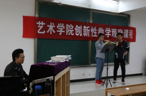 本次课程主要分四个环节。一是基本功的训练环节。基本功的训练很重要,需要调节自己的“气息”,在气息方面要求稳健,在指导训练中,王老师运用幽默诙谐的语言,使学生可以更好的理解和感悟节拍。二是理解作品和表现作品能力的训练环节。首先,强调对演奏歌曲的理解,要求强弱对比,只有在弱处才会把强处凸显出来;其次,要注意音符力度,王老师巧妙运用激励性语言、动作、神态,激发学生,鼓励学生。三是从技巧到内涵,逐步实现乐曲的完成环节。要求通过感受音乐、学习音乐、创造音乐,达到培养想象力、创造力,从而使得演奏更加完整。最后是钢琴伴奏提升艺术审美阶段。由雷音老师和王一凡老师先做示范,共同演奏一曲“西班牙斗牛曲”,然后让学生来跟着钢琴伴奏演奏。整节课程设计巧妙、环环相扣,起到了观摩示范效应。