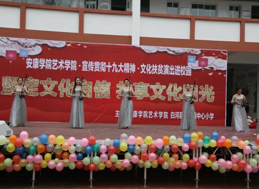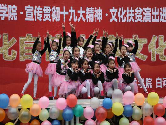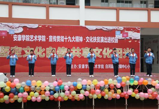 12月15日,beat365正版唯一官网必一70余名师生,赴白河县西营镇中心小学,举办“坚定文化自信,共享文化阳光”为主题的贯彻落实十九大精神、文化扶贫演出进校园”活动。政府督学徐维山、县教育局人事股长黄开国、西营镇党委书记王海波以及2000余名师生、群众参加了活动。