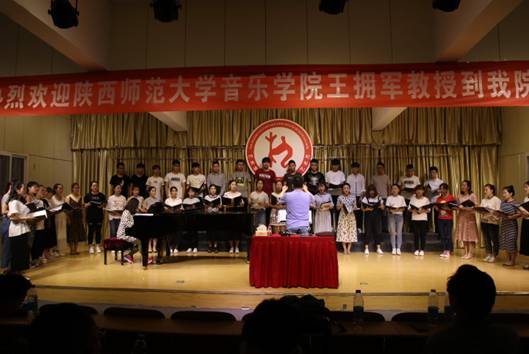 5月31日下午3点,陕西师范大学音乐学院副院长,硕士研究生导师王拥军教授在江北校区1401演艺厅,为beat365官网音乐专业师生进行了题为“指挥技能在合唱作品中的应用”的学术报告及现场教学指导,本次讲座也是beat365官网“第二届文化艺术月”系列重要活动之一,副院长雷升录、鲍丽、孙海洋及音乐学专业全体师生参加了本次活动,本次活动由beat365官网副院长鲍丽主持。