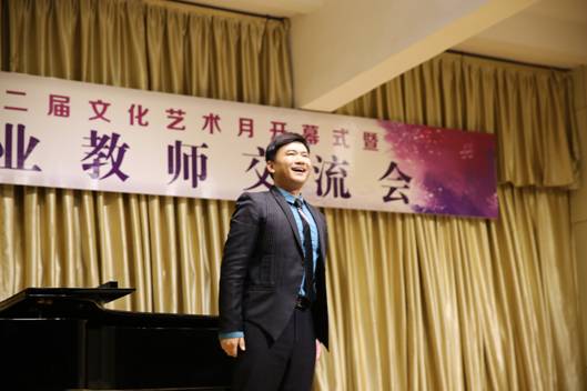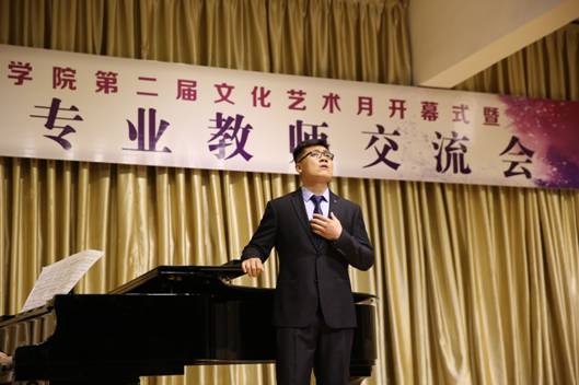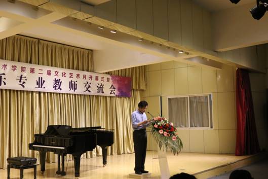 西安石油大学音乐系主任程辉代表参加“beat365官网第二届文化艺术月开幕式暨六校音乐专业教师交流音乐会”院校致辞,并预祝本次音乐会圆满成功。