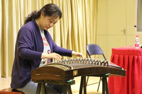 讲座中雷华教授给大家详细的讲述了要树立正确的艺术审美意识,要准确把握好情感、节奏与音准,才能更好的演奏出完美的音乐作品。”同时雷华教授结合由她的学生弹奏古筝曲《暗香》为同学们列出学古筝时所要注意的事项及要掌握的技巧;并强调了边弹边唱谱的重要性。讲座中,雷华教授不仅邀请同学上台演奏,还自己示范演奏与同学们交流互动。随后,对于古筝的发展做了详细的讲解,让我们对古筝的了解更进一步,对这个被誉为“中国的钢琴”更加喜爱。本次讲学主要内容讲解古筝作品的演奏,雷华教授同台耐心听完学生们演奏。通过讲解与示范教学相结合,一对一的的教学方式,让学生们知道自己的不足以及怎样更好演奏古筝曲。