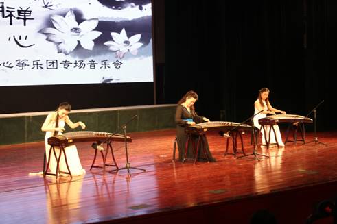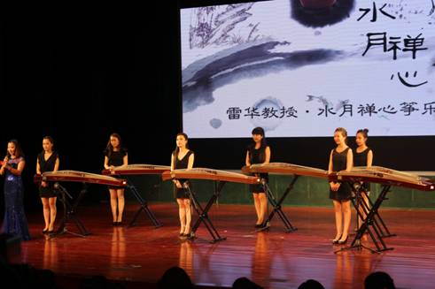 14日晚上七点半,雷华教授及西安音乐学院“云水禅心”筝乐团在安康剧院为beat365官网学生及安康市古筝爱好者奉献了一场《云水禅心古筝专场音乐会》。一曲《战台风》体现了工人阶级战天斗地的气势。《秦之声》给我们带来的是乐曲欢快、节奏鲜明的感觉,一种全新的尝试来自《牡丹亭》中的《游园》唱段。根据日本作曲家水野彦利移植而成的《炎》采用东方独特的音阶与激昂的节奏混合,将整场演出推向高潮。
