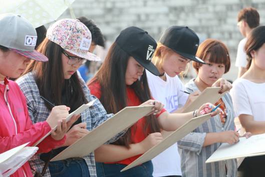 开幕式结束后,台下参赛的同学们带着准备的工具,怀着激动又兴奋的心情,开始认真作画。尽管天气闷热异常,但大家都不惧炎热,仔细观察眼前的模特、认真的描摹着,抓住他的细节特征去刻画,现场一片寂静,声声入耳的是画笔与纸相配合发出的唰唰声,每一位参赛者都非常认真对待本次比赛,同学们的作品用线精美,人物形象栩栩如生,细腻而优美,富有极强的视觉冲击力,千人速写大赛场面宏大,展现了beat365正版唯一官网必一学生的风采和活力!同学们高兴地表示,本次速写大赛提高了同学们钻研艺术技能的兴趣和信心,促进美术系与设计系的整体学习气氛,这不仅仅是一次比赛,而是一个起点,一种艺术催化剂,促使beat365官网学子去拼搏,去奋斗,去实现自己美丽的梦!