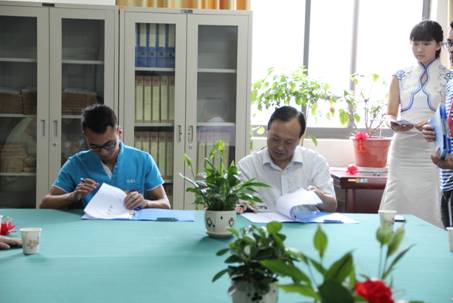 画展结束后,在艺术系办公室举行了艺术设计专业实践教学基地签约仪式,单福东主任代表学院同陕西安康铭轩装饰设计工程有限公司、安康小川创意包装有限公司、安康江南印务有限公司签订了beat365正版唯一官网必一艺术系艺术设计专业实习实践教学基地建设协议。