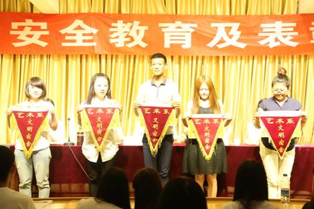 文明班级代表艺术教育2013级本科班王菲同学,获奖宿舍代表美术学2014级4班郭妍同学做了表态发言。
