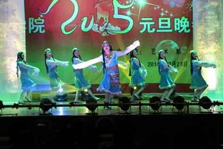 我系2015年“群艺花开”元旦晚会体现了学生主导、老师协助、专业定制、格调高雅、依托社团、广泛参与的特点。参演的学生达二百余人,真正契合了利用每一个平台促进每一位学生发展的学生工作理念。晚会充分发挥了艺术系合唱团、小虎中乐团、蜗牛话剧社三个专业学生社团的积极性,为大学生社团提供了展现的平台;表演的音乐剧、舞蹈、乐器演奏、民歌联唱等都充分展示了艺术专业特色,给观众们带来了一场视听盛宴。这是一场辞旧迎新的联欢,这是一次丰富的校园文化活动,这也是又是一次教与学的汇报展示,我们相信,在中国传统的喜气洋洋的“羊年”,我系集体和师生个人都将迎来进一步的发展,为学校的发展做出更大的贡献!
