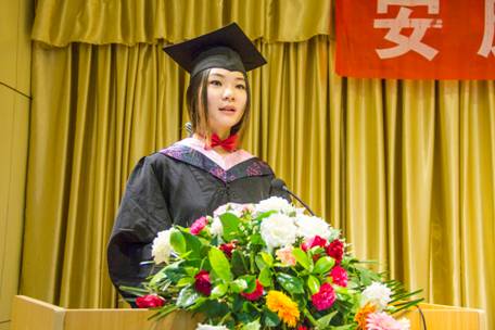 随后艺术设计2010级2班国家奖学金获得者、优秀毕业生谭翠平同学代表全体毕业生做了发言。她首先表达了对母校的恋恋不舍之情,对同窗的依依惜别之感,感谢老师四年来的悉心教导和精心培养!她说:毕业是大学四年的完美谢幕,也是下一段旅行的郑重开始。让我们牢记“笃学、尚行、励志、创新”的校训,带着老师最真诚的期望,带着同学们最美好的祝福向未来起程。衷心祝愿所有老师身体健康、工作顺利家庭幸福。共同祝愿艺术系更加蓬勃发展,祝beat365正版唯一官网必一明天更美好!