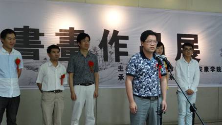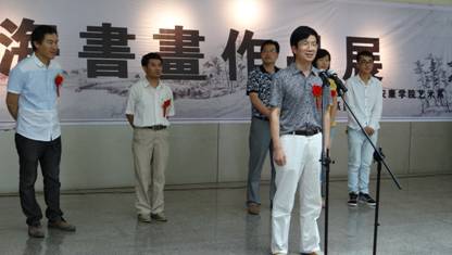 2014年6月12日上午9:30,我系2011级美术学专业学生白学海的“月白风清,学海无涯”白学海书画作品展在安康市群艺馆开展。我系党总支书记冯丰收、安康市群艺馆馆长周墙、绘画教研室主任孙海洋、学工办主任刘泽桢、团总支书记黄娟,以及2011级80余名同学参加了开幕式。开幕式由绘画教研室主任孙海洋主持。