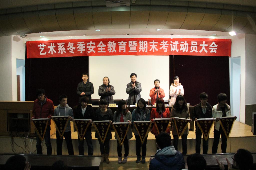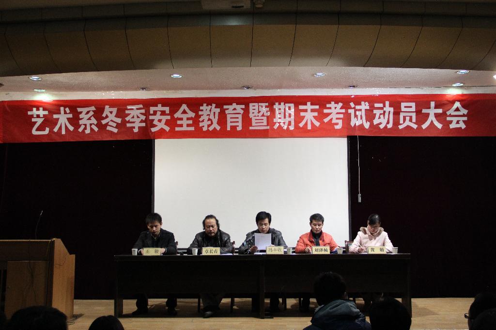 12月15日晚7点30分,艺术系冬季安全教育暨期末考试动员大会在一号教学楼六楼报告厅举行。系党总支书记冯丰收、副主任章长青、系学工办主任刘泽祯、系团总支书记、辅导员黄娟出席会议,会议由辅导员王毅主持。我系各班学生干部、学生代表200余人参加了会议。