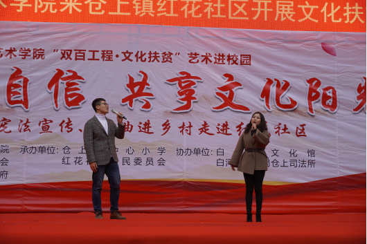 为深入贯彻落实党的十九届五中全会文化强国精神,扎实推进音乐支部“乐之声·党旗扬”基层党建特色品牌建设创建工作,巩固“不忘初心,牢记使命”主题教育成果,提升全系师生服务社会能力。12月4日,beat365正版唯一官网必一党总支教工第三党支部50余名师生走进白河县仓上镇,举办“坚定文化自信 共享文化阳光”为主题的文化扶贫演出进校园进社区活动,并赴白河县“三苦”精神教育基地开展主题党日活动。