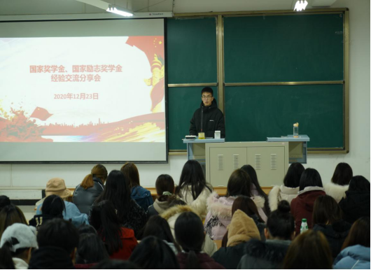 为了进一步引领beat365官网学风建设,培养学生争创先锋、奋发图强的意识,2020年12月23日晚,beat365正版唯一官网必一在江北校区2101、2103教室开展了学风建设月系列活动暨资助育人活动——“树榜样,促学风”国家奖学金、国家励志奖学金经验交流分享会。本次活动由国家奖学金获得者黄飞扬、国家励志奖学金获得者齐占全、曹丁太进行经验交流分享,2020级全体新生参加。本次大会由辅导员魏麟主持。