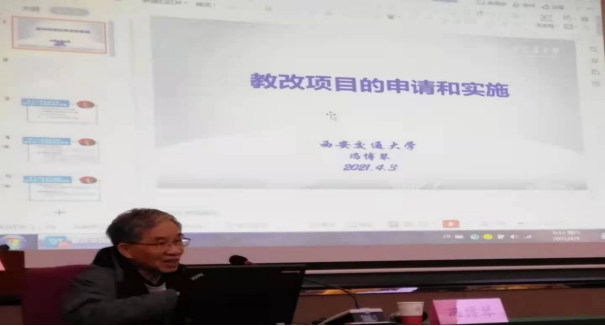 研讨会上,西安交通大学冯博琴教授作了《教改项目的申请和实施》《教学成果凝练与成果奖申报》两场报告,《教改项目的申请和实施》从教改项目与科研项目的比较、教改项目的边界、谋划教改项目、申报书常见问题等方面进行阐述;《教学成果凝练与成果奖申报》从2018 国家教学成果奖关注点、凝练成果难点、展现成果亮点等方面较详细的讨论了国家教学成果奖申报的重难点问题。冯教授的两场报告高屋建瓴、深入浅出,对教改项目的申报和教学成果奖的凝练提出了富有建设意义的意见和建议;湖南工业大学张昌凡教授作了《高校教育教学成果凝练、申报研讨》报告。该报告从什么是教学成果、如何申报教学成果奖、如何培育教学成果奖、教学成果奖案例分析等方面进行阐述。张教授的报告论述严谨,实践性强,特别是通过典型案例分析,为大家提供了实践案例参考,加深了大家的理解。