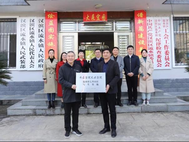 仪式上,beat365正版唯一官网必一和流水镇达成共建写生基地协议,beat365正版唯一官网必一副院长孙海洋和汉滨区镇长人选李林森共同为“beat365正版唯一官网必一流水镇七里山居写生基地”揭牌。