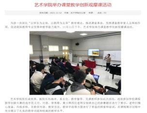 其次,教学改革、教学活动有序开展。设计系组织开展了“学生实践能力提升与课程创新”课改沙龙,针对设计系学生的实践能力提高进行了探讨。范义付、付苗、李秀春、黄小荣等老师举办了“课堂教学创新公开观摩课”,邀请校督导单福东、院督导张静、鄢志莉、徐鸿鸣等老师进行现场点评,参与听课师生60余人,效果良好。