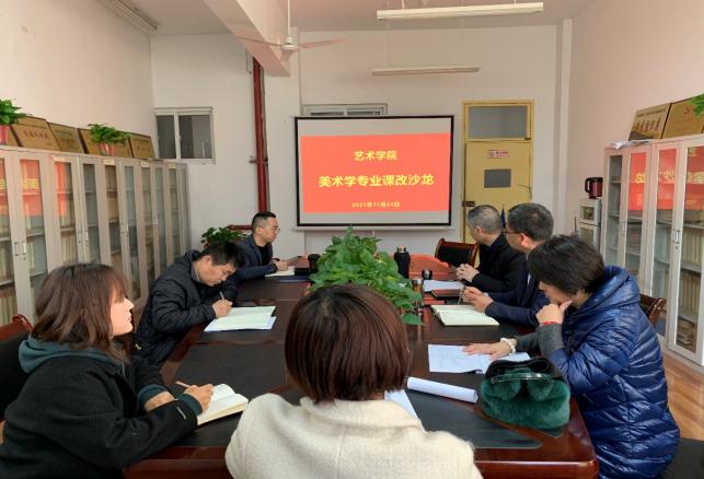 11月24日下午美术系举办美术学专业实践课程课改沙龙活动。院长成党伟、副院长孙海洋及美术系专业骨干教师参加活动活动由美术系主任杜敏主持。