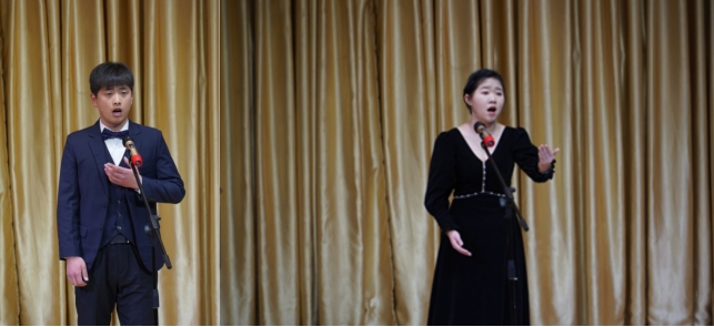 参加音乐会演唱的是范老师声乐3课程的17位学生。在范老师创新声乐“颤音教学模式”的指导下,声乐水平总体提高较快,其中周新科、贺丽丽、翟俊豪2021年获第八届陕西音乐奖安康赛区声乐比赛民族组三等奖,冯艳茹、胡婷婷、孟政宇获该项赛事美声组优秀奖。音乐会上,八位担任独唱的同学分别演唱了《青玉案•元夕》《天涯望月》《多么幸福能赞美你》《战士为国守安详》《红豆词》《夕阳红》《黄水谣》《一抹夕阳》《虽然你冷酷无情》《祖国之恋》等作品,最后17位同学一起演唱了《在水一方》。