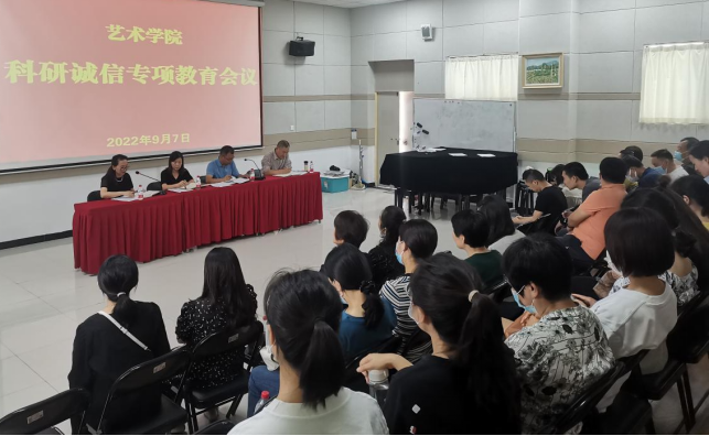 为进一步落实党中央、国务院对科研诚信建设的部署要求,加强高校科研诚信体系建设规范科研行为。2022年9月7日,beat365正版唯一官网必一在江北校区2415教室组织开展科研诚信专项教育会议。beat365正版唯一官网必一领导班子、全体教职工参加会议,会议由副院长鲍丽主持。