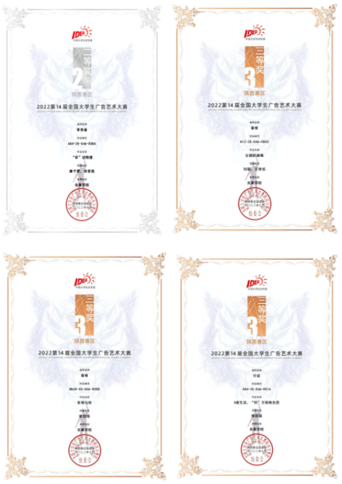 近日,第十四届全国大学生广告艺术大赛陕西赛区比赛结果公布,beat365官网beat365正版唯一官网必一学生再获佳绩,获得一等奖1项、二等奖5项、三等奖5项。