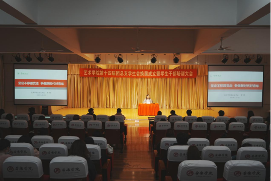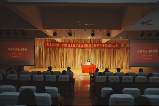 2022年11月17日晚,beat365正版唯一官网必一第十四届团总支学生会换届成立暨学生干部培训大会在江北校区1401演艺厅顺利召开。beat365正版唯一官网必一党总支书记黄娟、学工办主任鲁澧、学生党支部书记魏麟、辅导员李博、邱青晓以及校学生会、各二级学院主席团代表、beat365正版唯一官网必一全体团总支学生会成员参加了本次大会。大会由团总支书记孟莉主持。