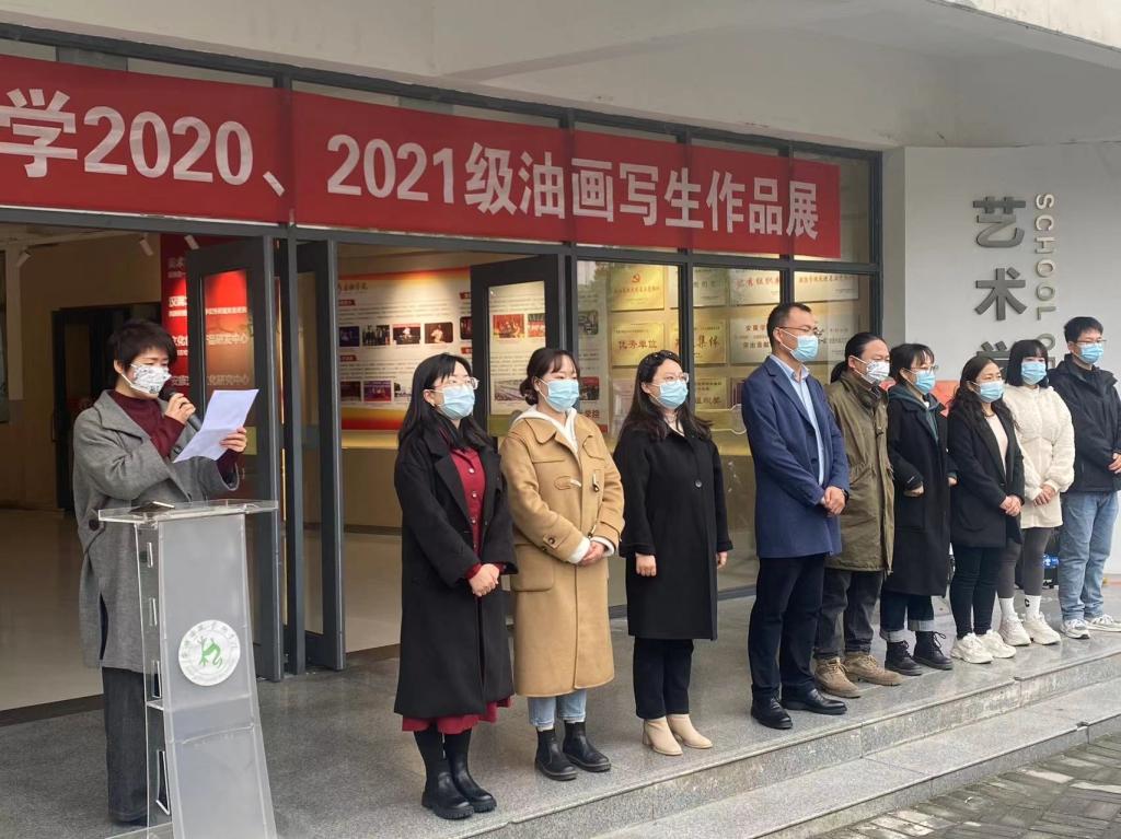 成党伟在开幕式致辞中讲到:此次油画写生作品展是疫情常态化防控条件下的一次重要的实践教学活动,在学院的周密安排组织和3位带队老师的精心指导下,写生活动取得了预期效果。希望通过作品展以展促学、以展促教,通过交流学习建立倒逼机制,倒逼教师抓好实践教学的组织管理、学生认真完成写生任务,不断提升美术实践类教学质量。带队教师代表黄小荣代表指导教师进行了发言,希望学生走进自然、走进生活,从大自然中领悟色彩中光和色的魅力,不断提升专业能力。苏嘉慧代表此次写生学生进行了发言。