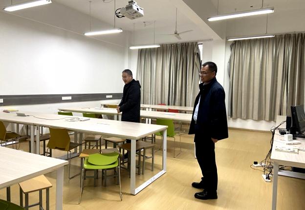 检查小组主要对实训室的安全设施、教学设备 、环境卫生等进行了检查,成院长要求实训室工作人员要增强安全意识,加强对实训室的管理维护,确保实训室安全稳定。针对部分实训室存在的缺少门牌问题,成院长要求要尽快补齐;对楼道存放的物品,要尽快清理;对存放有贵重教学设备的实训室,要做好防盗工作。成院长强调检查中发现的问题要纳入整改台账,及时跟踪解决,保障教学工作顺利开展。