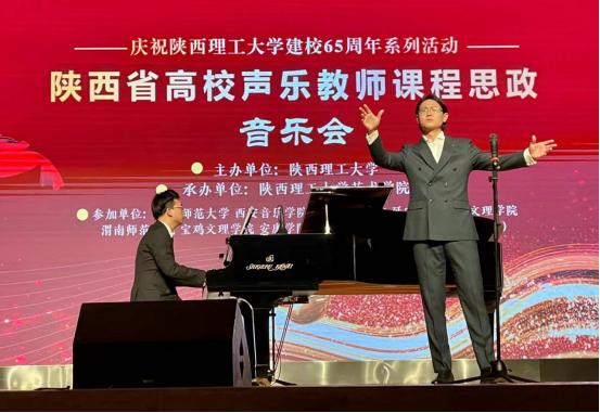 4月19日—20日,beat365正版唯一官网必一副院长鲍丽、音乐系主任肖剑和青年教师张亮红博士应邀参加由陕西理工大学主办的“陕西省高校声乐教师课程思政音乐会暨红色经典歌曲育人价值学术研讨会”,一同参加的高校有陕西师范大学、西安音乐学院、西安石油大学、延安大学、西安文理学院、渭南师范学院、宝鸡文理学院、商洛学院等兄弟院校的专家学者,800余名师生聆听了音乐会。