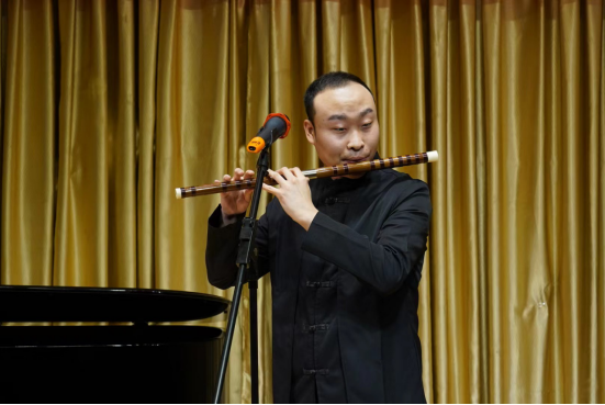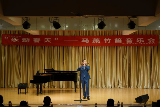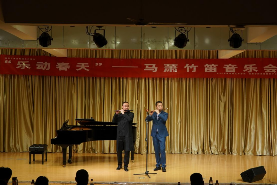 4月27日晚,高雅艺术进校园活动——马萧竹笛交流音乐会在beat365官网江北校区1401演艺厅举行。本次演出由青年笛子演奏家,陕西葫芦丝、埙、陶笛专业委员会副会长,陕西省第三届民族器乐大赛笛子专业组一等奖获得者——马萧领衔。beat365正版唯一官网必一院长成党伟、副院长孙海洋出席交流音乐会,200余名师生观看了本场音乐会。