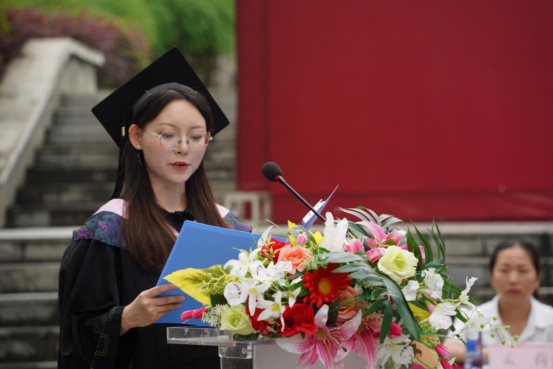 2019级视觉传达设计专业张星代表毕业生对学校及老师的培养表示感谢,将不辜负老师们的殷切希望和深情嘱托。做新时代有志青年、逐梦而行,成就更好的自己,为母校争光添彩,并祝愿母校越办越好,培养出更多的栋梁之才。