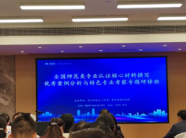 在研究班上,听取了胡萍教授的《认证“主线”的构建难点、材料制定示范案例》报告和杨建教授的《示范专业认证的底线与专业建设》报告。专家通过实际案例分享了师范专业认证的前期准备和过程性材料的撰写,并就2023年8月在太原召开的师范专业认证新要求做了详细讲解。