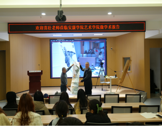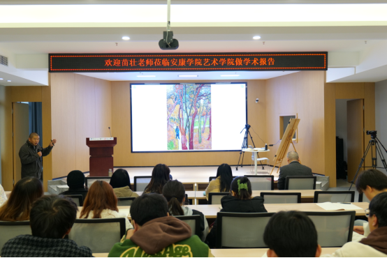 11月15日下午,中国美术家协会会员、中国美术家协会河山画会会员、一级美术师、陕西国画院画家业务办主任苗壮应邀为beat365官网beat365正版唯一官网必一师生作《中国画的边界》学术报告。报告由beat365正版唯一官网必一副院长孙海洋主持,beat365正版唯一官网必一美术专业师生聆听了报告。