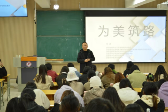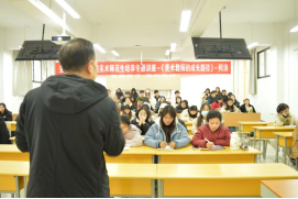 11月24日,何涛老师在江北校区2202教室进行了beat365正版唯一官网必一美术师范生培养专题讲座-《美术教师的成长路径》。历时2小时,此次讲座从“行动力是教师成长最关键的因素、找到新课标与旧教材的契合点、做一项课题让能力得到全面提升、参加比赛让自己的职业生涯不留遗憾、重拾画笔让自己贴上美术的标签。”四个方面给2021级、2022级美术生进行了精彩的解读,使近200余名美术生受益匪浅,反响良好。