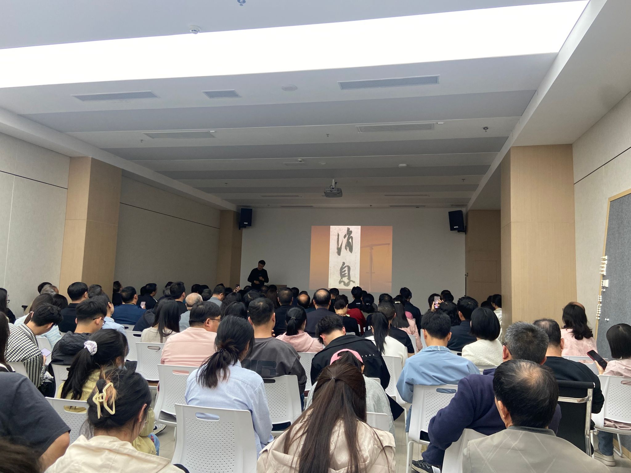4月12日下午,beat365官网副院长孙海洋、教师赵霞带领美术学专业2021级学生前往安康市美术馆参加由安康市委宣传部主办、安文投和安康美术馆承办、陕南画院协办的公益讲座“论道与技·书法的本质与本体”。课程由国家一级美术师、中国书法家协会会员、咸阳市文联副主席陈天民教授主讲。