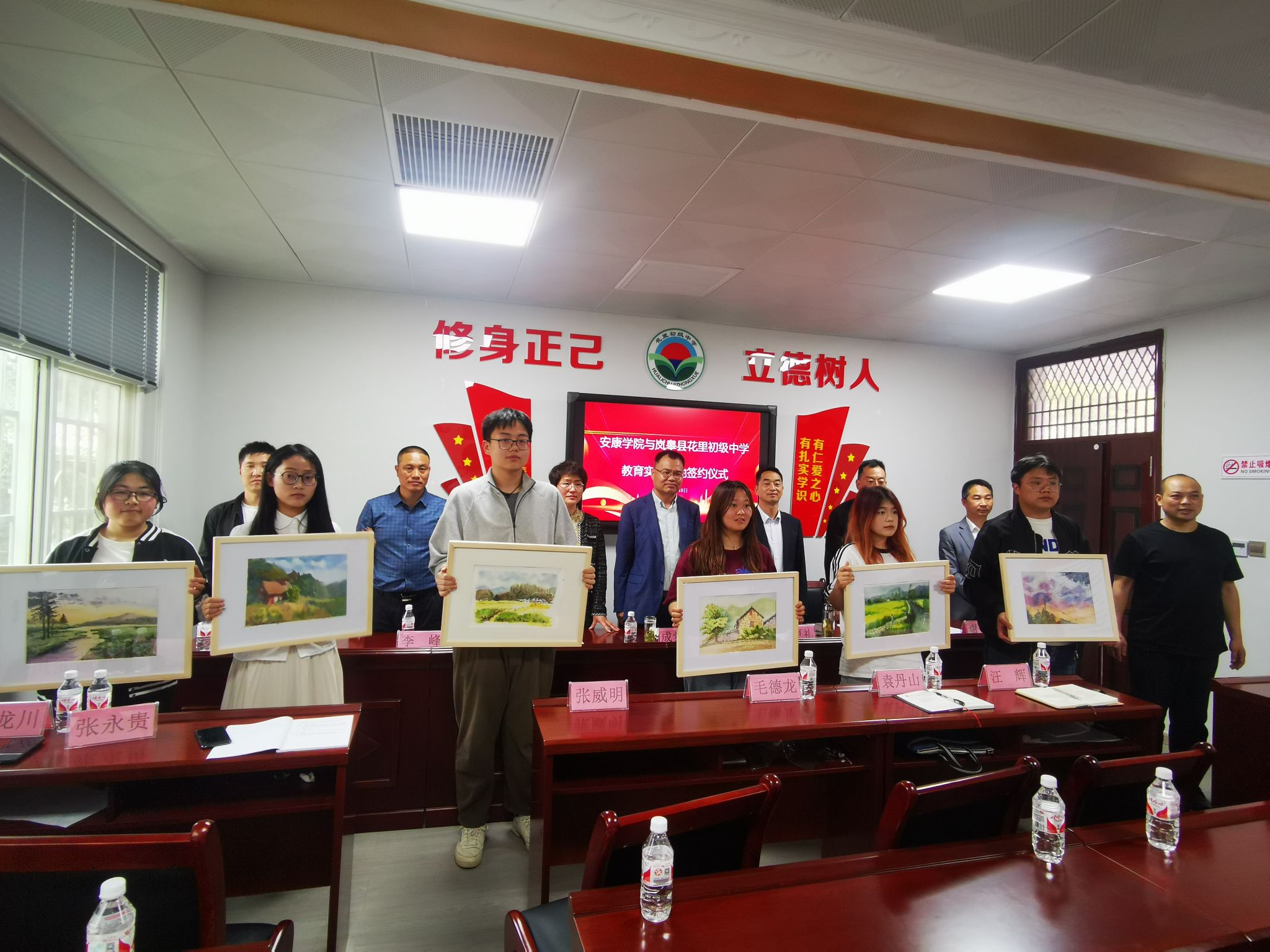 随后,beat365正版唯一官网必一与岚皋县花里初级中学举行了美育实践基地签约仪式,beat365正版唯一官网必一院长成党伟和岚皋县花里初级中学校长狄邦银代表双方签约,岚皋县教育体育科技局教育衔接办主任丁更礼见证签约,活动由花里中学政教主任谢战主持。双方就共同促进美育工作签订了美育实践基地共建协议。活动中,beat365正版唯一官网必一12位同学把第一批12幅美术写生作品捐赠给花里初级中学作为美育教学资源。