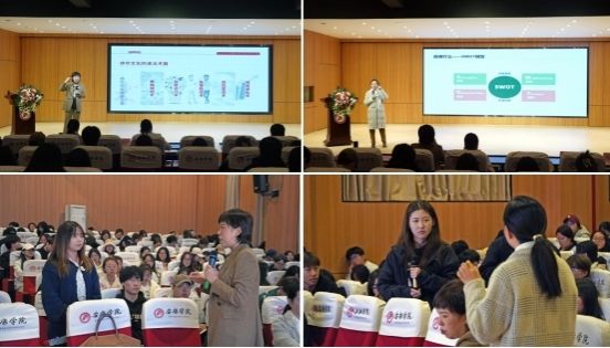 在互动交流环节,同学们纷纷就“就业与创业的关系”“如何提高职业生涯规划能力”等问题向两位巾帼创业导师请教,导师们耐心解答,给出了全面而细致的建议,使同学们受益匪浅。