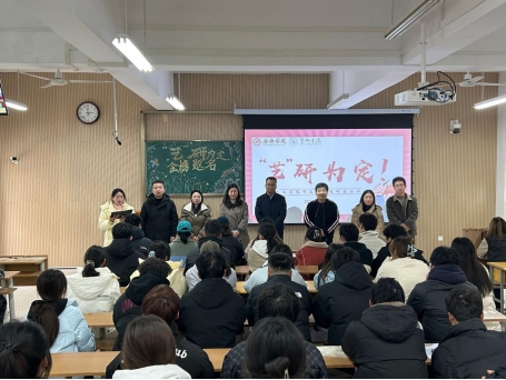 12月5日下午beat365正版唯一官网必一在江北校区 2103教室举办考研慰问活动,学院党总支书记黄娟、院长成党伟、副书记肖剑及全体辅导员老师慰问考研学子,为同学们加油鼓劲。活动由辅导员邱青晓主持。