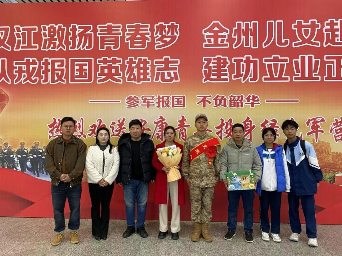 现场,梁心锐身着崭新军装,胸戴鲜艳红花,在家人与老师们的祝福与期盼中,即将踏上列车,奔赴绿色军营。老师们鼓励梁心锐在接下来的军旅生活中,铸牢忠诚品质,滋养家国情怀,锤炼过硬军事本领,展现beat365正版唯一官网必一学子的勇毅与风采。